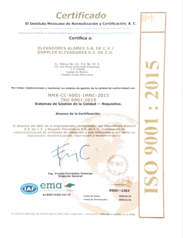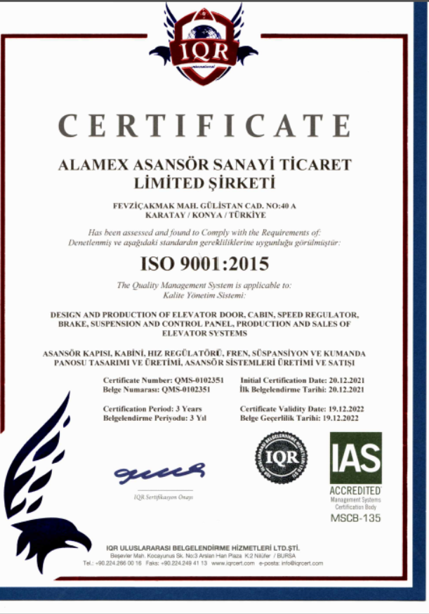 (ALAMEX ISO) DESIGN AND PRODUCTION OF ELEVATOR DOOR, CABIN , SPEED REGULATOR, BRAKE, SUSPENSION, AND CONTROL PANEL, PRODUCTION AND SALES ELEVATOR SYSTEMS