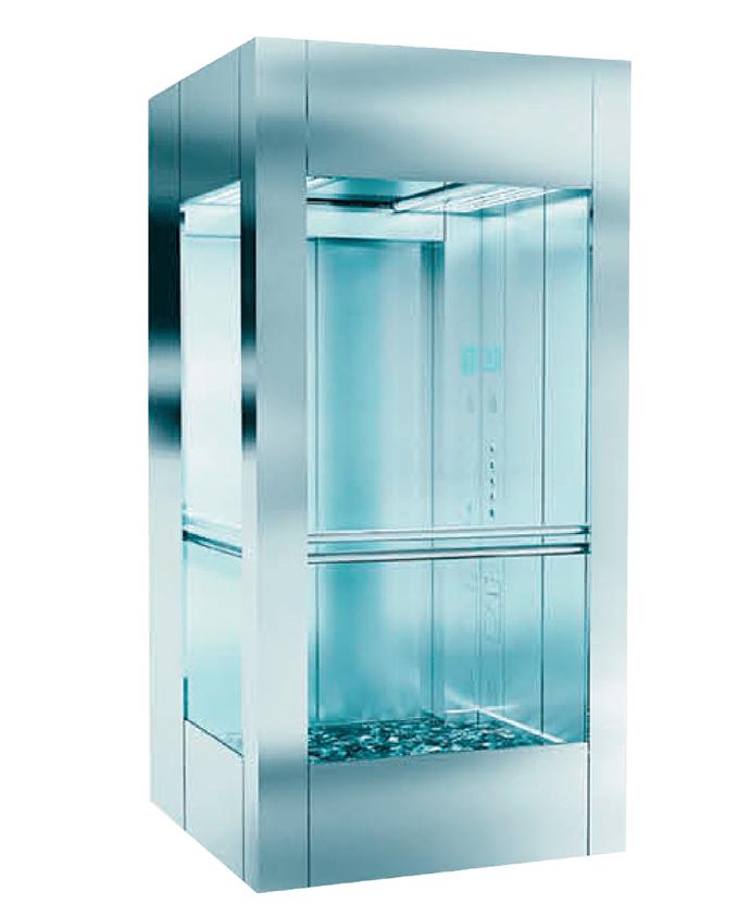 Car in stainless steel with curved or straight glass panoramic rear wall.